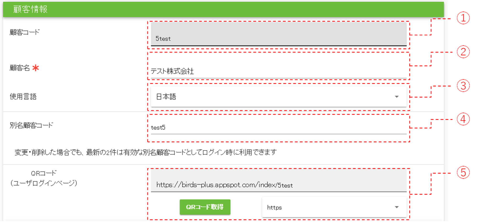 ④別名顧客コードを設定します。ログイン時に入力する顧客コードに別名顧客コードを使用することもできます。